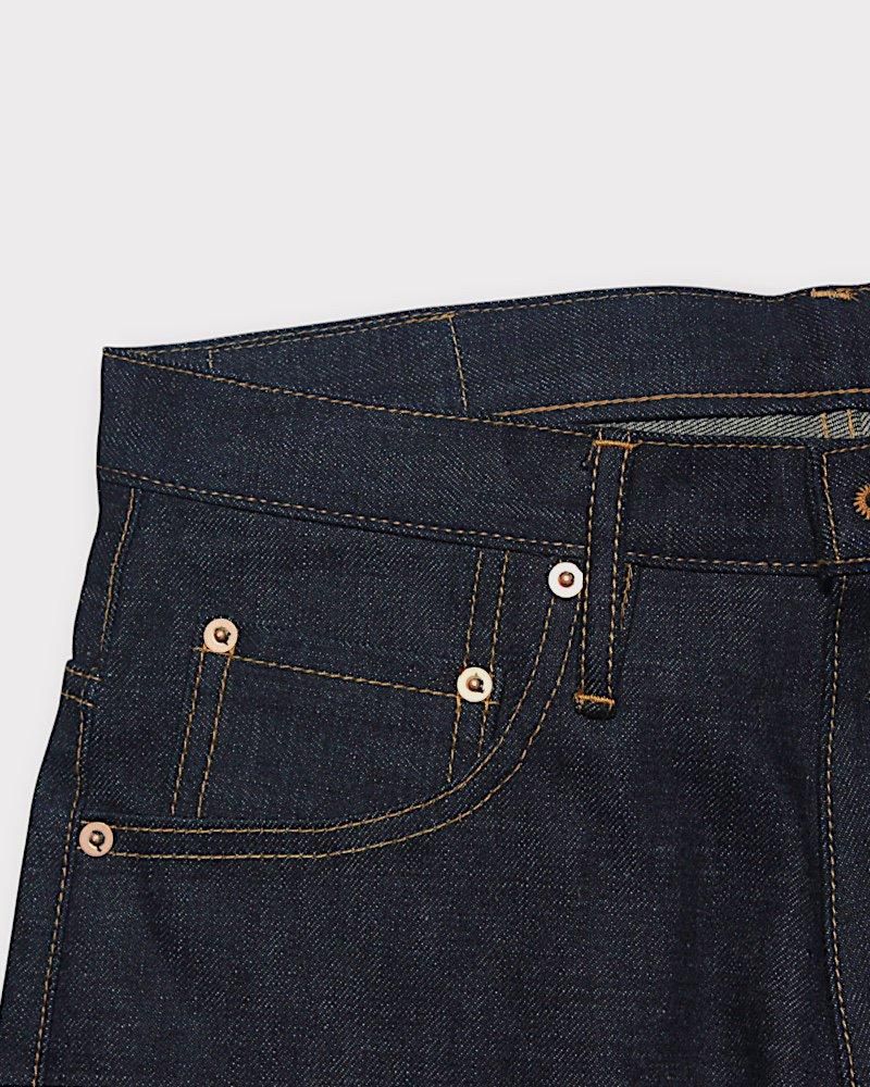 芯まで染めきらない為に色落ちは早い生地ですが、緯糸がカーキに染められていることによって深みのあるヴィンテージライクなフェードが起こるよう設計されています。
