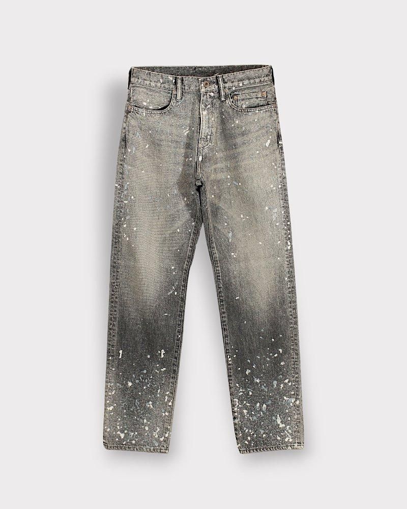 フェード加工を施したデニムパンツの上から、粒子状にフロッキー加工しカビのような質感を再現。