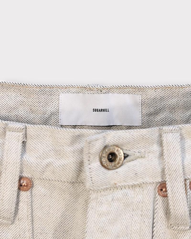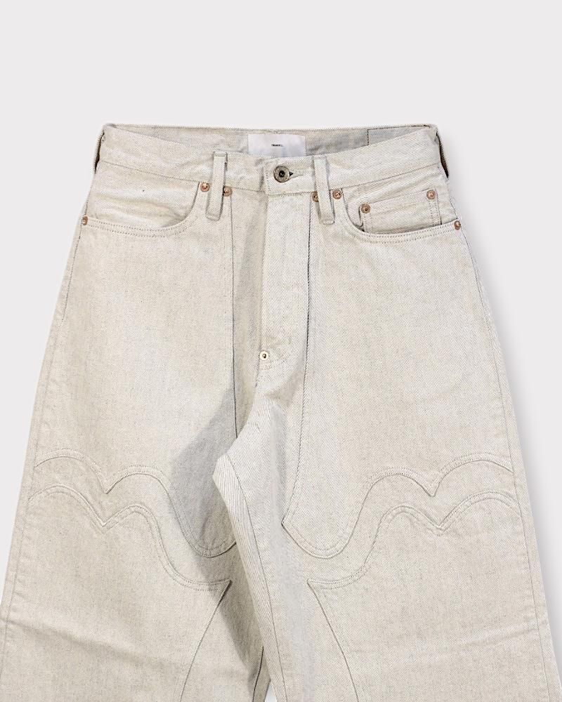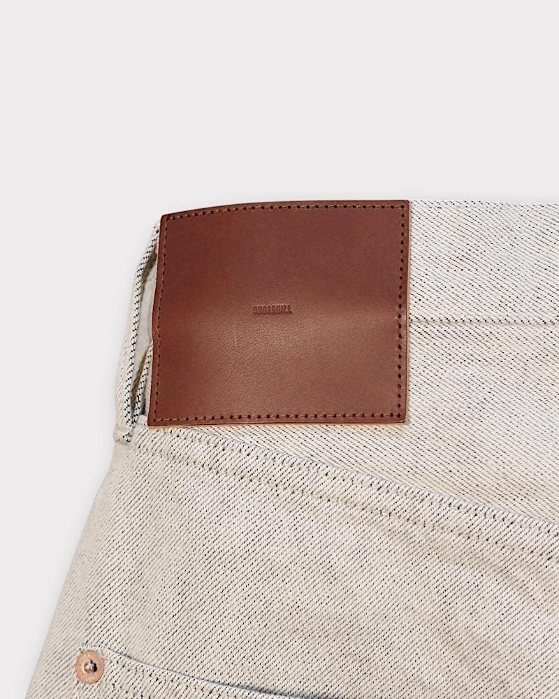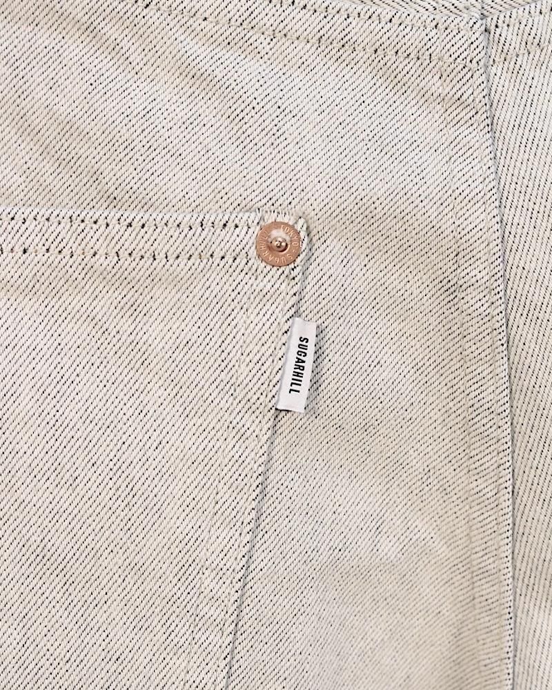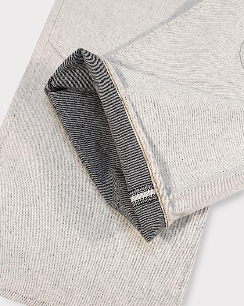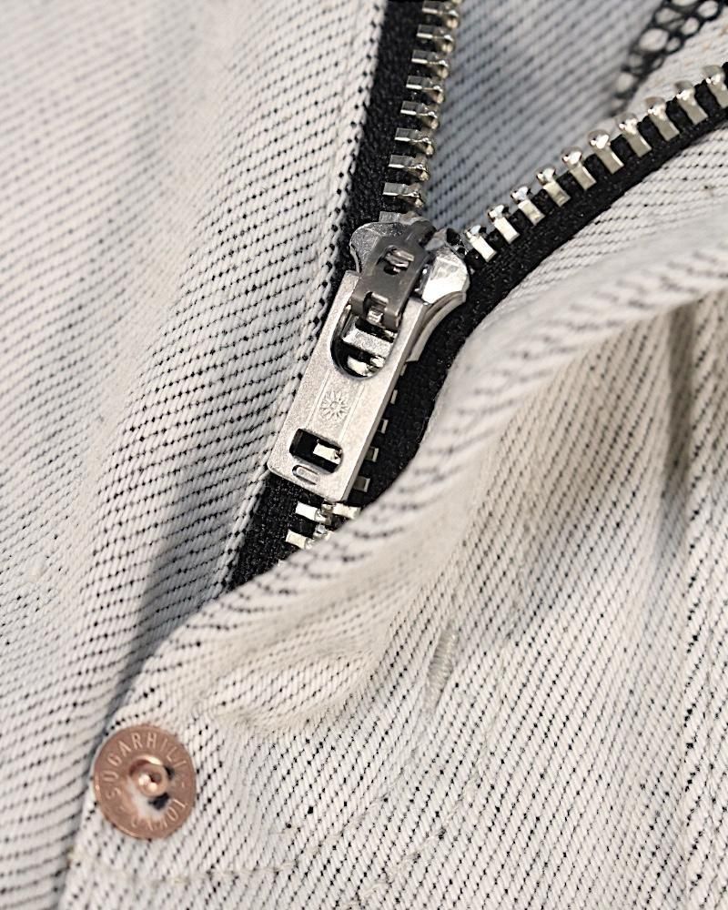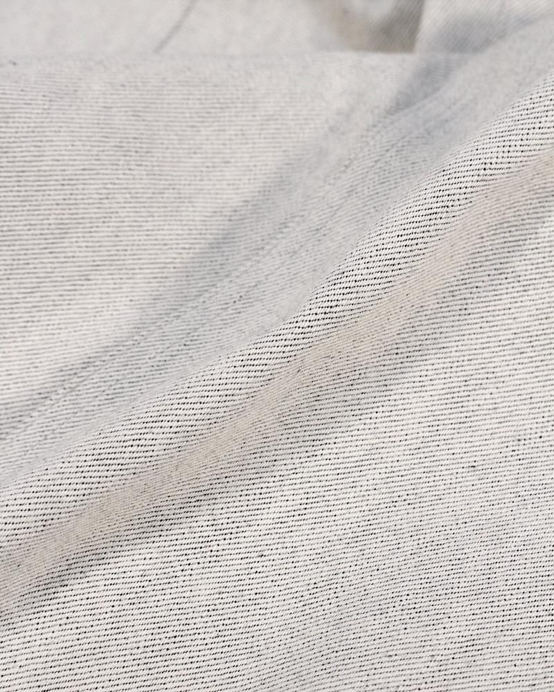 白い縦糸と対照的な黒の横糸で作られた奥行きのあるデニム。