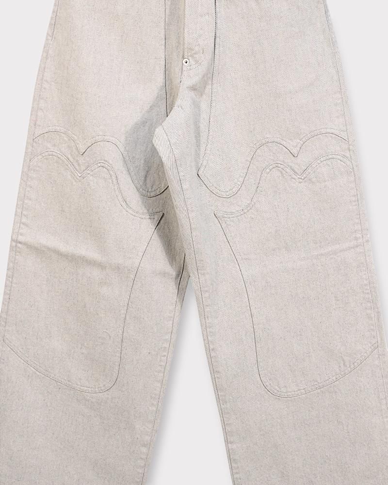 ユニークなダブルニーデザインは、ヒップから裾までゆったりとしたシルエットでデザインされ、洗練された雰囲気をプラスしている。