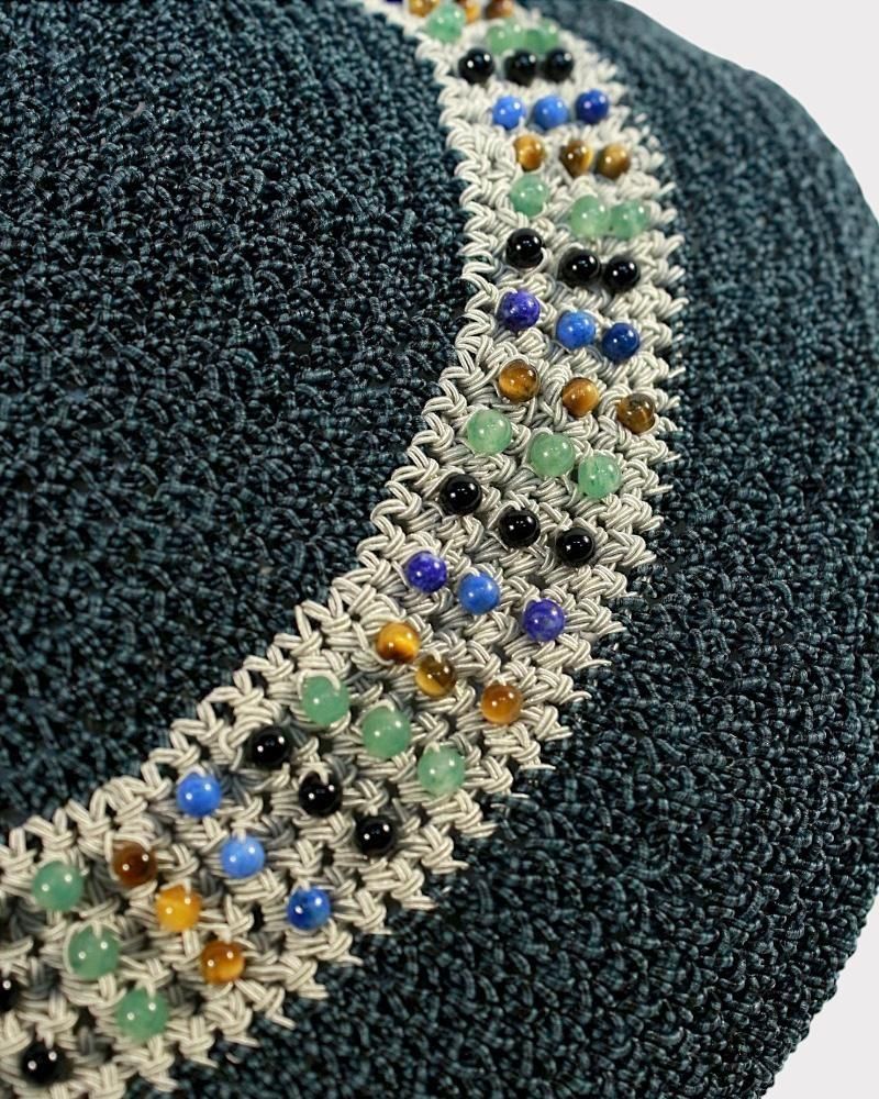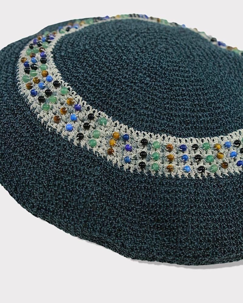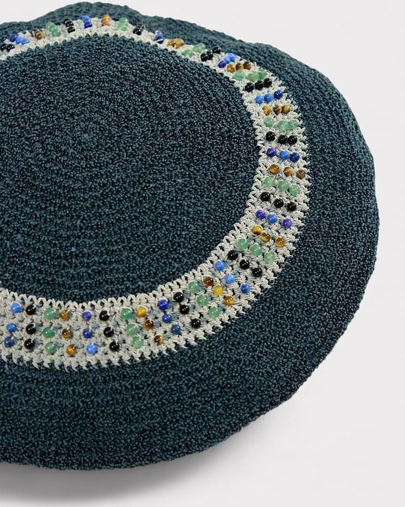 手編みの繊細な風合いと、ヴィンテージ感漂うビーズ刺繍が魅力のハット。