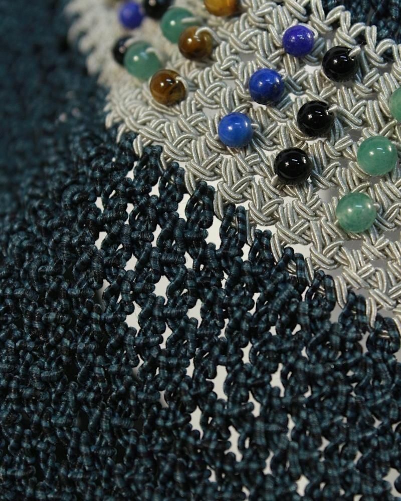 波のようなライン状に施された多色ビーズが、クラフト感と洗練された雰囲気を演出します。