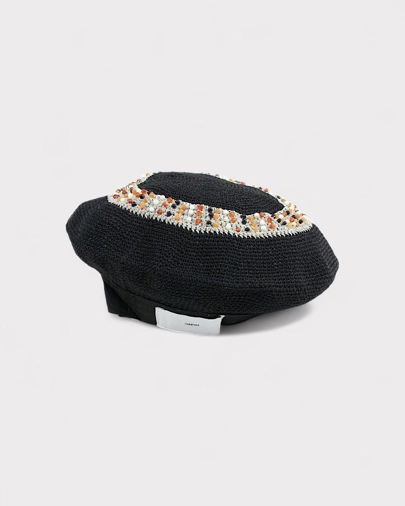 手編みの繊細な風合いと、ヴィンテージ感漂うビーズ刺繍が魅力のハット。