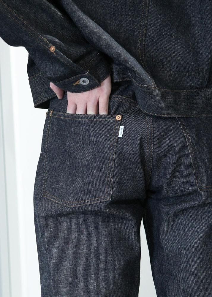 岡山は井原市に本社を構えるクロキ株式会社との協業によって新たに開発された、オリジナルの左綾デニム”JIMI CLOTH”を使用。