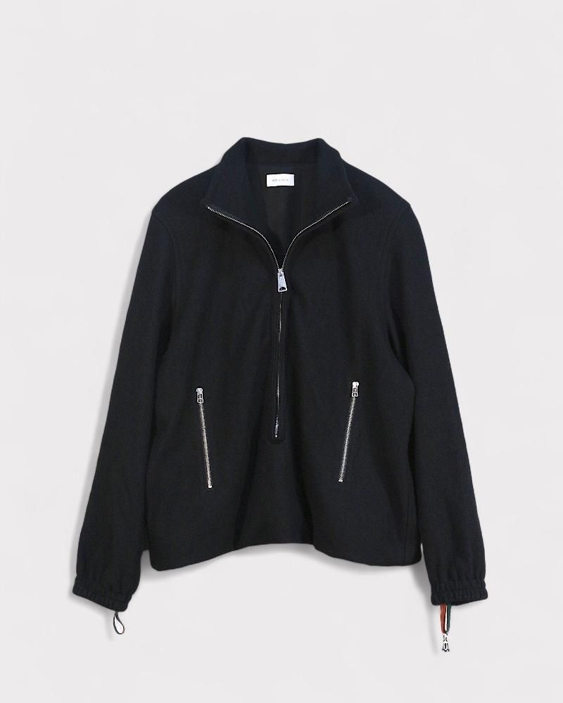 長めのフロントファスナーが目を惹くプルオーバーのブルゾン。