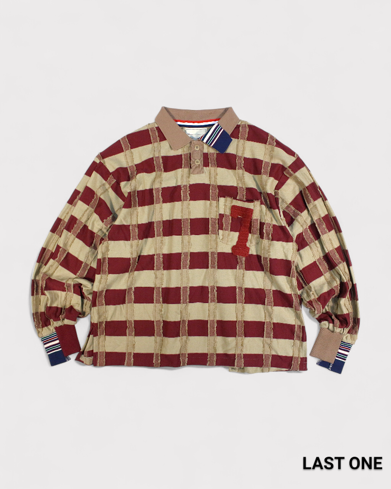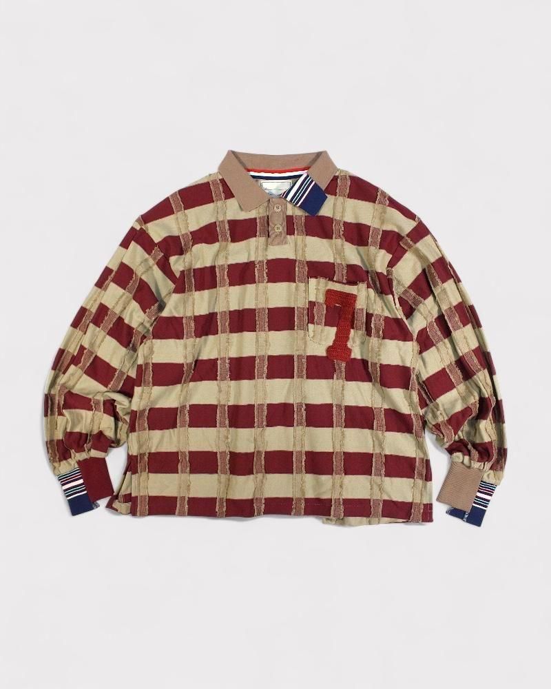 インパクトある配色のジャカードストライプが目を引く、ロングスリーブポロシャツ。