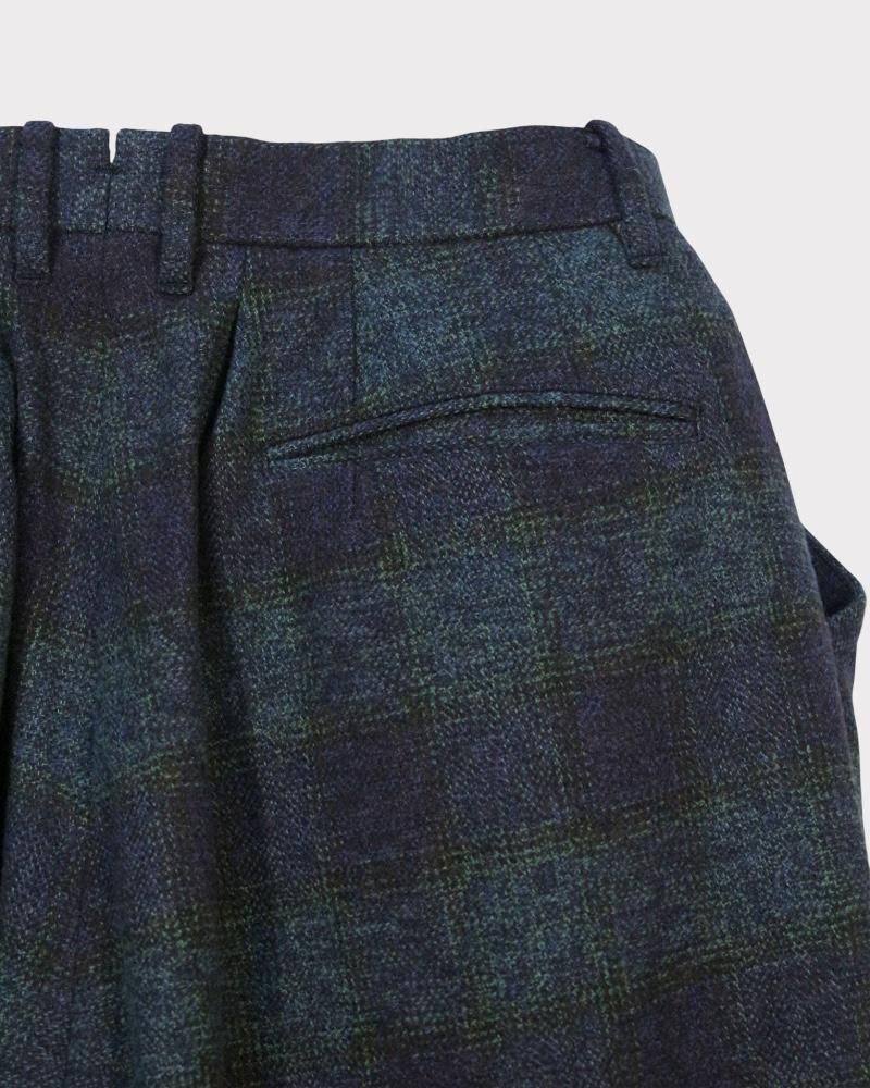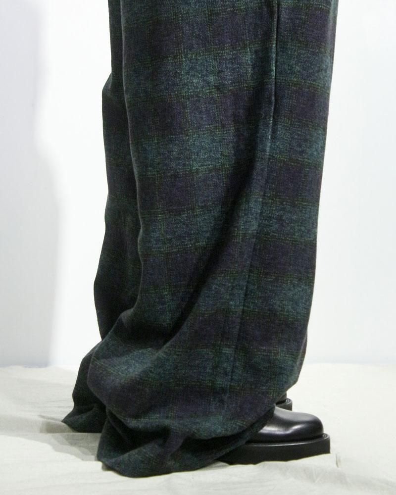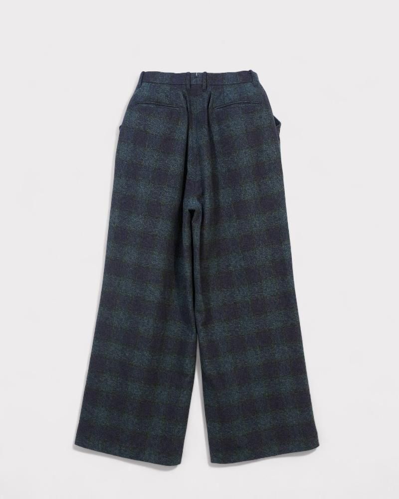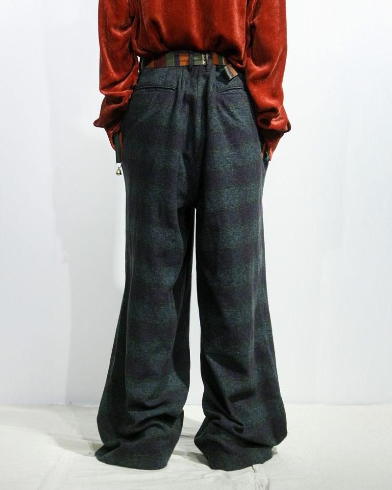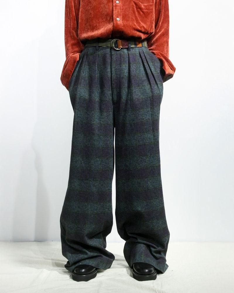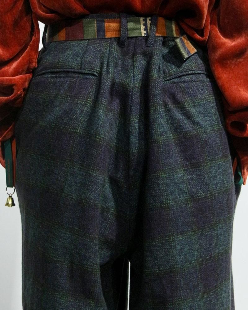 素朴で温かみのある風合いが魅力のツイード生地を使用したワイドトラウザーズ。