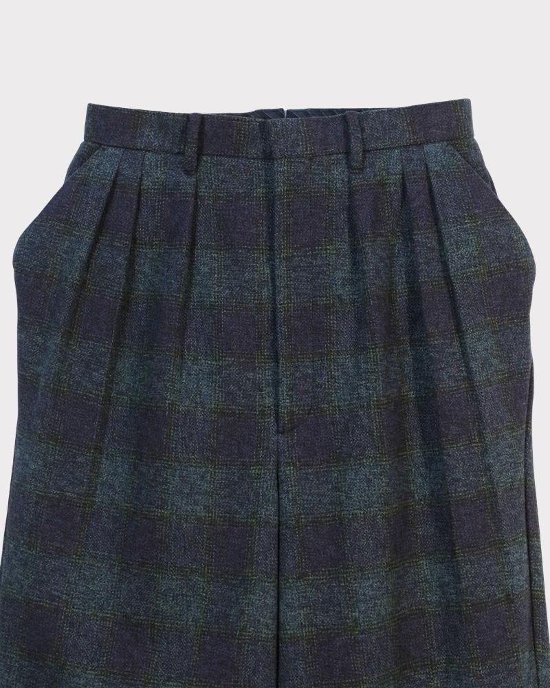 落ち着いたトーンのチェック柄が、クラシックで上品な印象を演出。