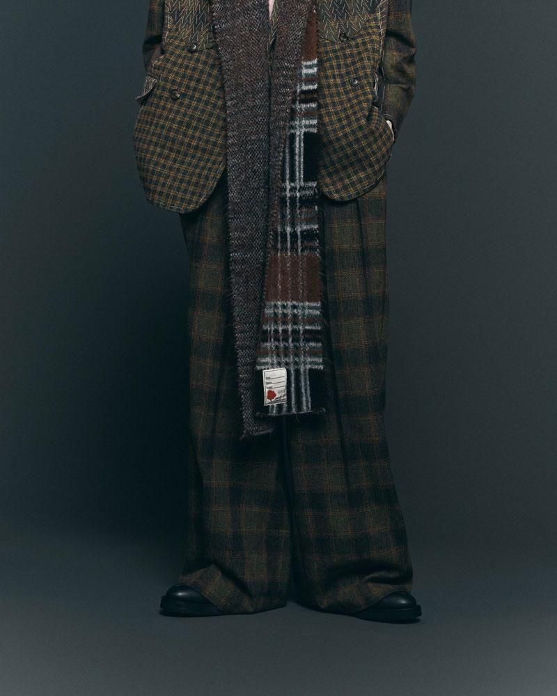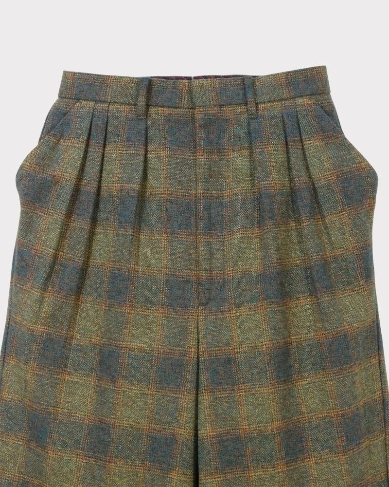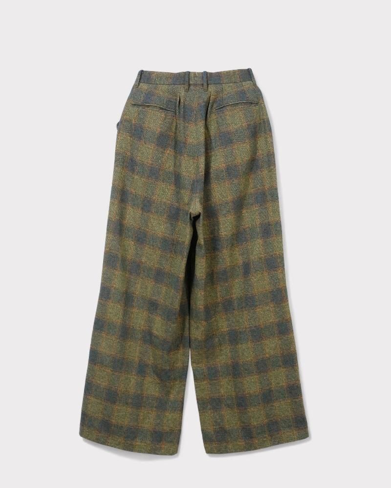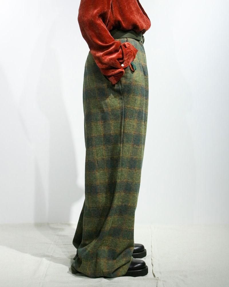 素朴で温かみのある風合いが魅力のツイード生地を使用したワイドトラウザーズ。