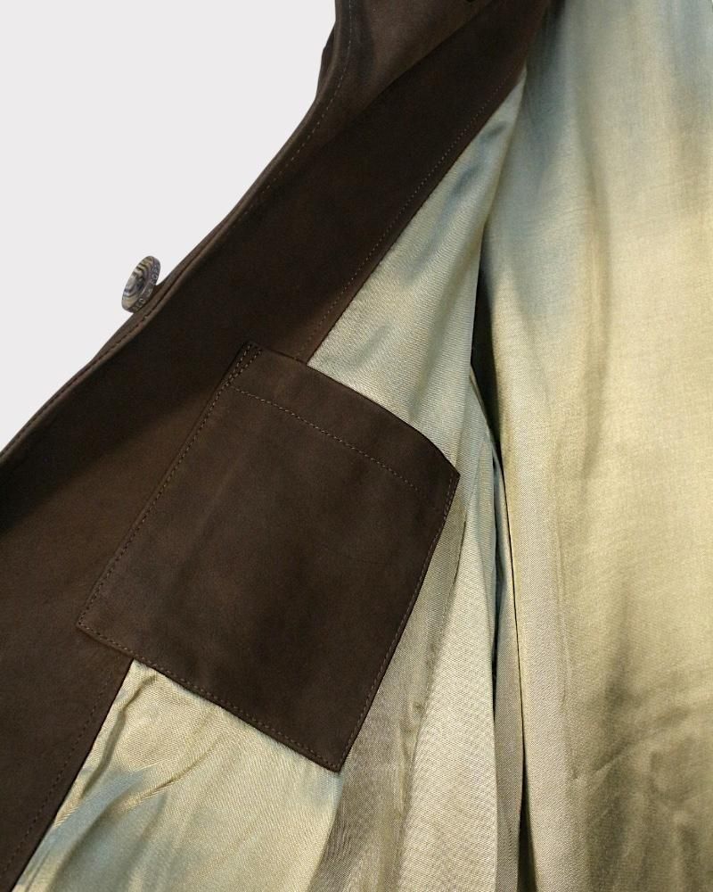 革の表面を起毛させることで生まれた、ベルベットのような滑らかな手触りが特徴。